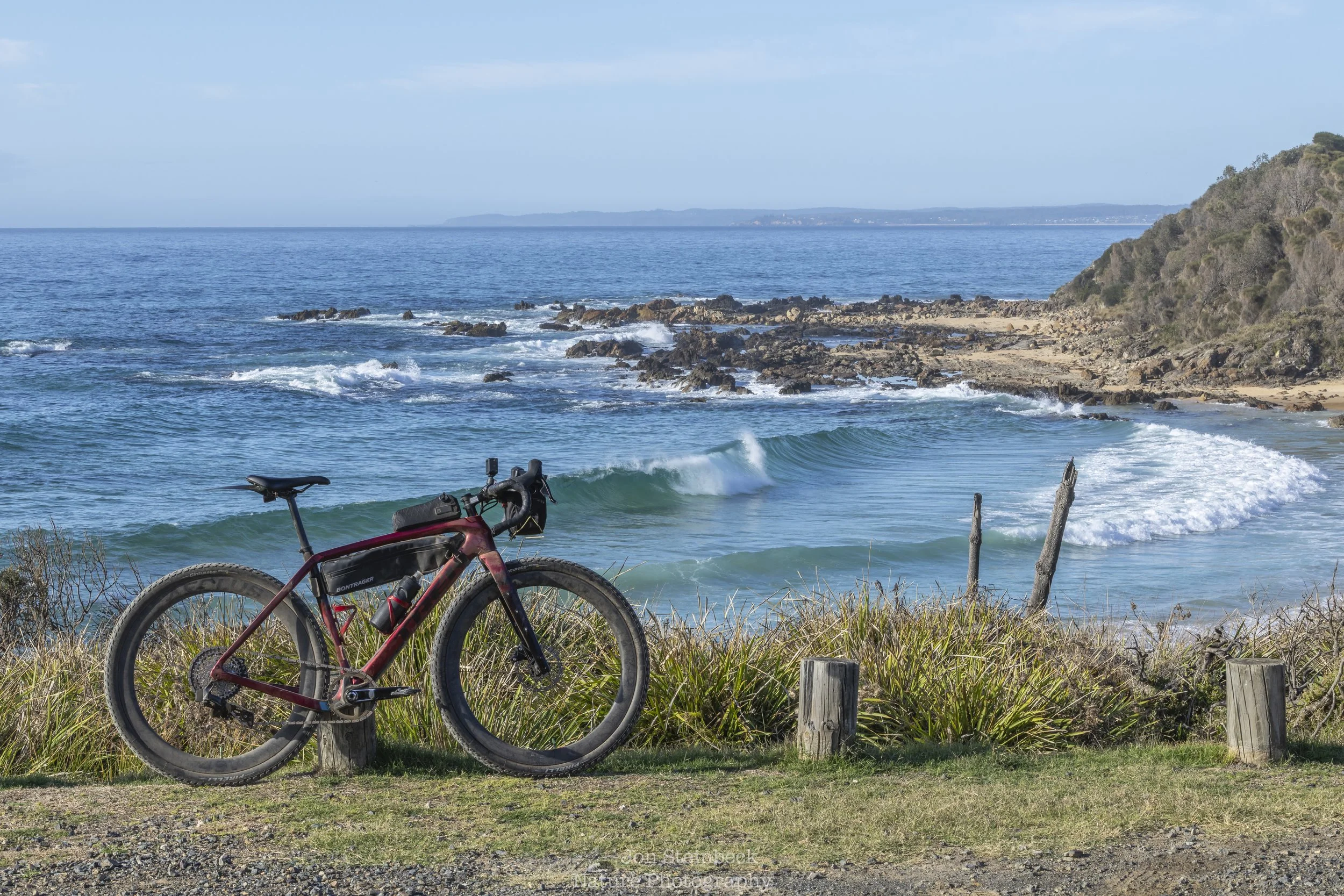 I was so happy with finding the Emus but I decided against returning the next day because the weather forecast was that it would be cloudy, so I thought that the light wouldn’t have been better than on my first day. I therefore decided it would be nice to go touring on my bike around the region. That morning, I went south from Narooma, first to Tilba and then to some of the beaches south of Mystery Bay. I also rode along a stretch called Sunnyside Road, which I thought was an apt description for how I was feeling. The weather actually turned out to be better than the previous day but I saw a number of lyrebirds and some Wonga Pigeons, so it was still a wonderful morning.